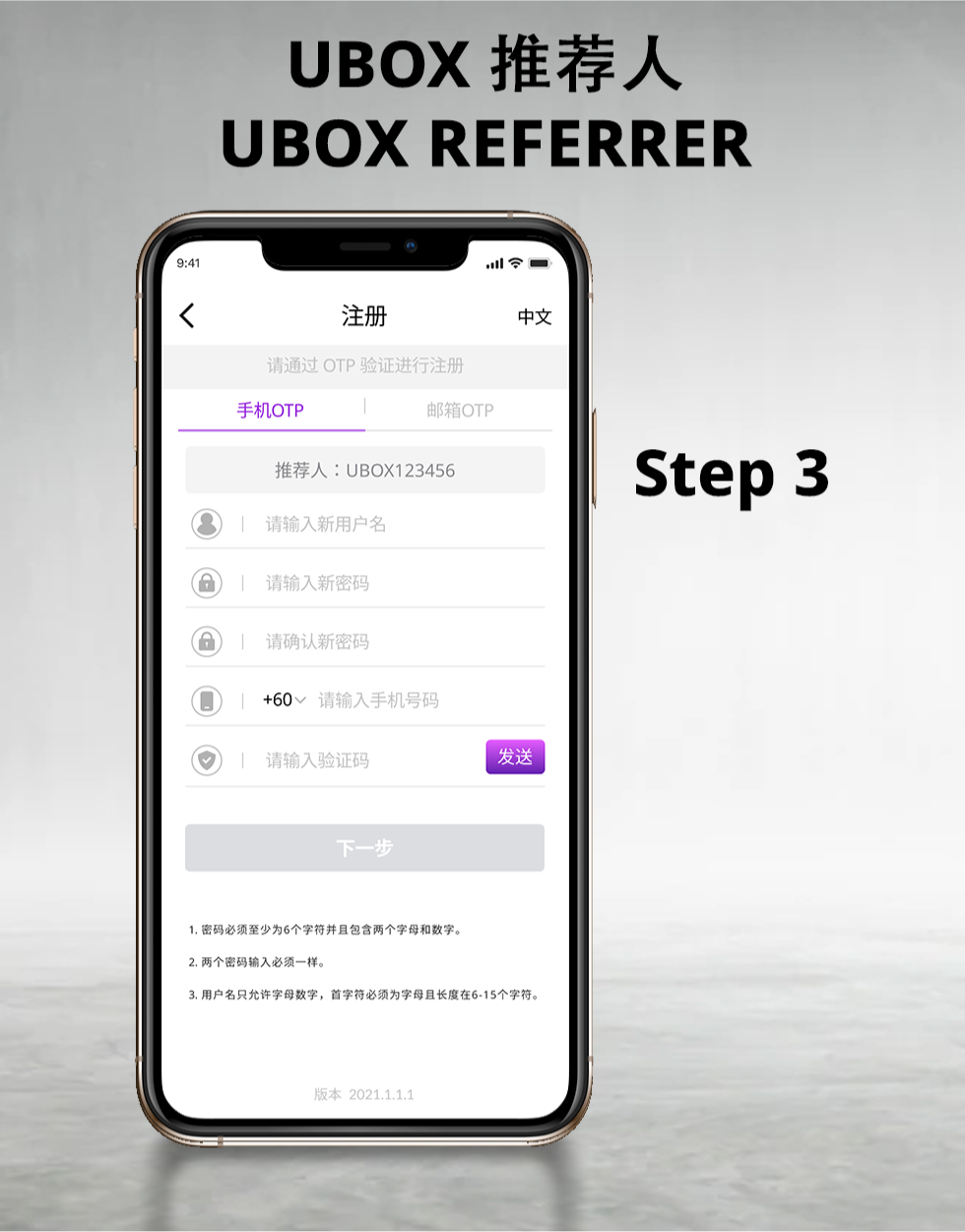 Contact customer service, or search UBox on Facebook to get the referral code.